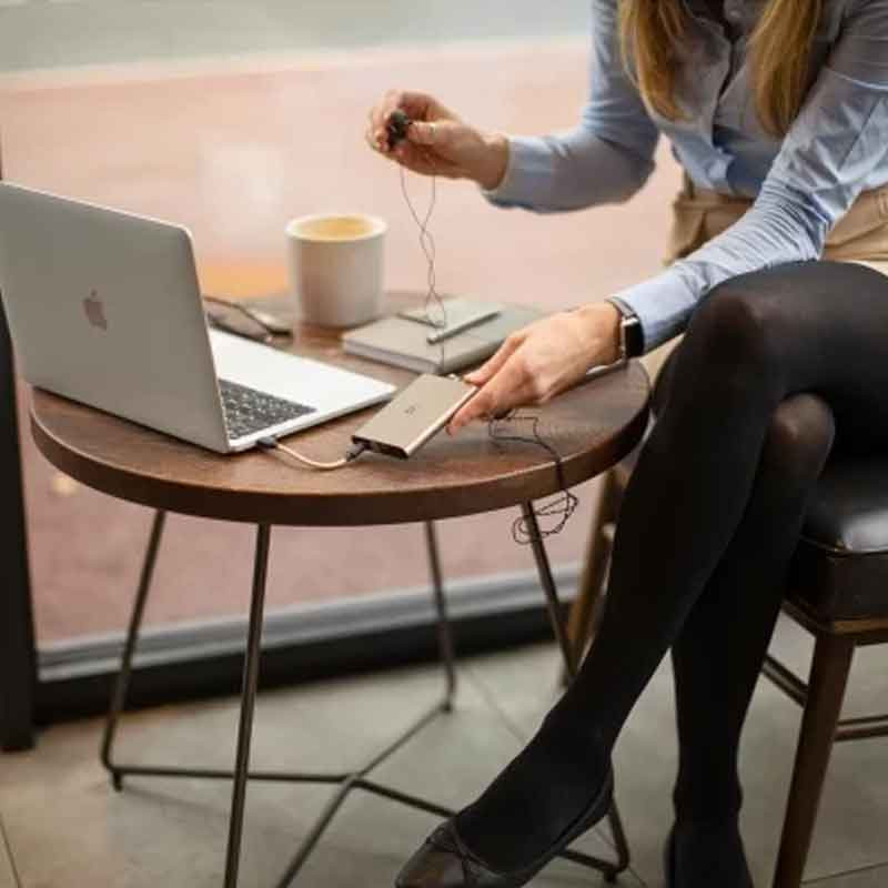 Hip-Dac 3 предлагает универсальные возможности подключения: от входа USB-C, поддерживающего звук высокого разрешения, до двух выходов для наушников, как несимметричных, так и балансных наушников. Аккумулятор емкостью 2200 мАч гарантирует до 12 часов воспроизведения, а входящие в комплект кабели упрощают подключение ваших устройств.