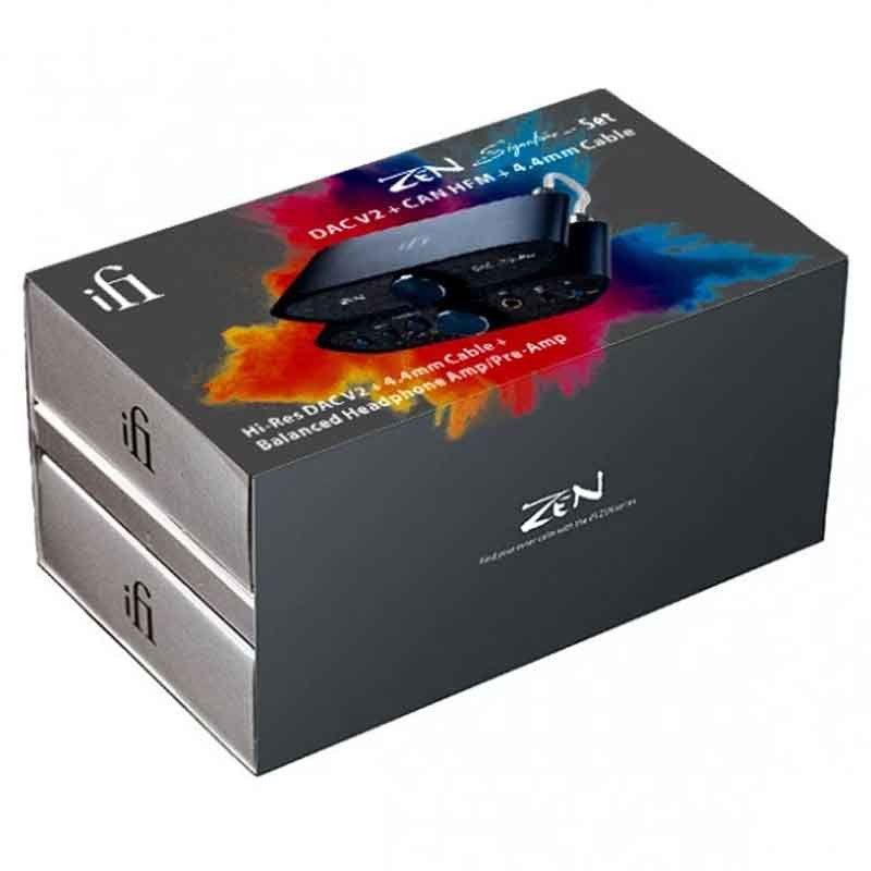 iFi ZEN Signature Set HFM (Black) – комплект ЦАП и усилитель ZEN DAC Signature V2 и ZEN CAN Signature HFM со сбалансированным кабелем 4,4 мм отлично дополнят ваш рабочий стол. ZEN Signature Set HFM включает как ZEN DAC Signature V2, обновленную версию нашей оригинальной ZEN DAC Signature, так и новую ZEN CAN Signature HFM. ZEN CAN Signature HFM имеет уникальную кривую эквалайзера, которая обнаруживает лучше всего в и без того линейке наушников HiFiMam. Этот набор включает в себя высокопроизводительный сбалансированный кабель 4,4 мм для их соединения.