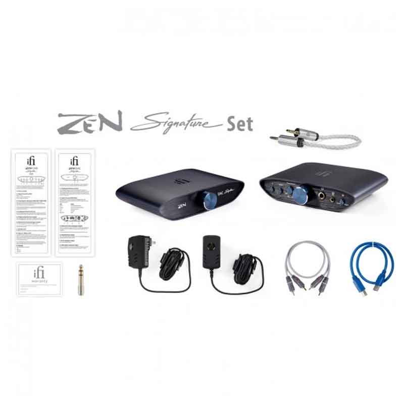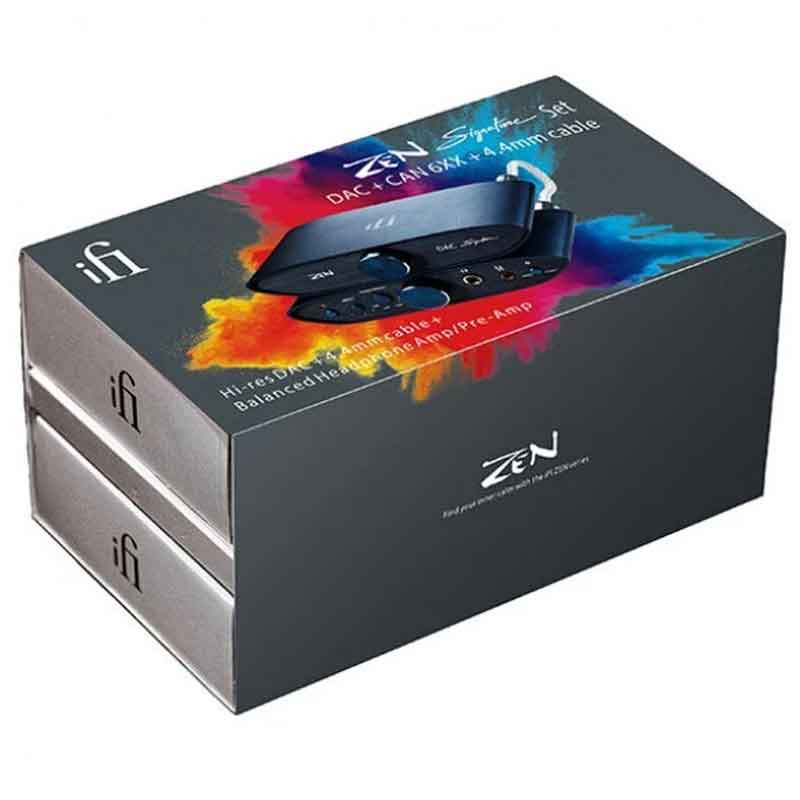 iFi ZEN Signature Set 6XX (Black) – комплект ЦАП и усилитель. Настольный аудиофильский сет, состоящий из мультибитного ЦАП iFi Zen DAC Signature V2 и мощного усилителя для наушников iFi Zen CAN Signature 6XX. Примечательно, что усилитель для наушников имеет фирменную опцию (можно отключить) адаптацию исходных характеристик под параметры полноразмерных наушников Sennheiser 600-й серии. О каждом компоненте этапа Вы можете прочитать на его странице.