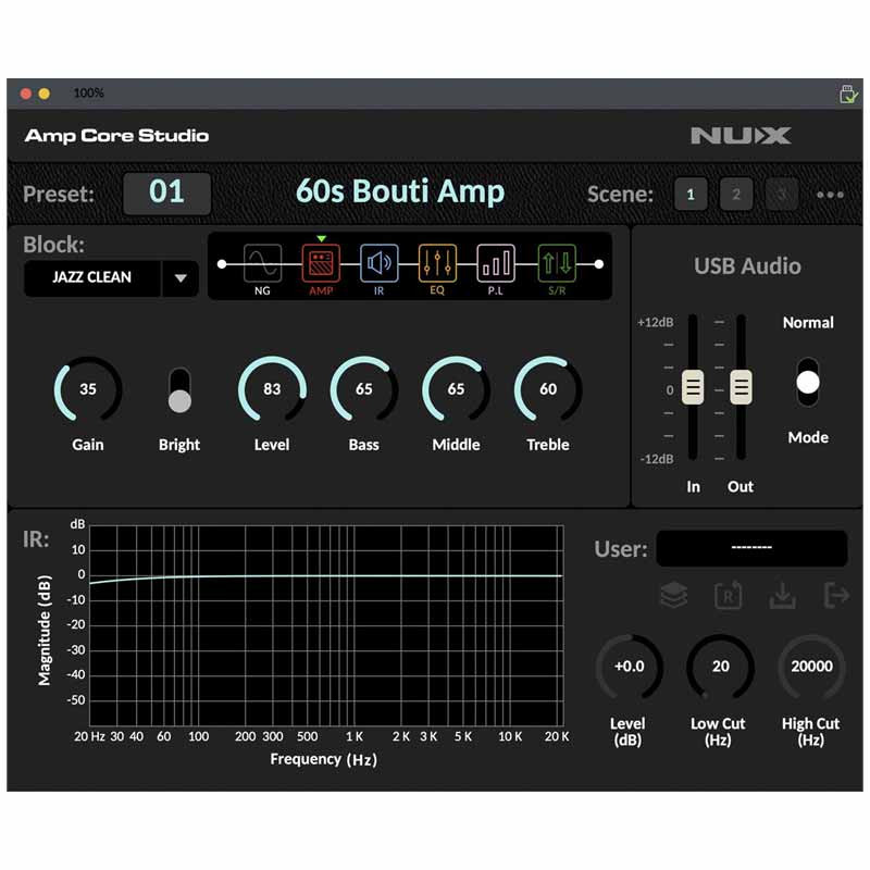 Благодаря трем режимам Scene, Amp Core Studio позволяет мгновенно переключаться между разными типами звучания – от кристально чистого до насыщенного драйва. Вы можете использовать 33 встроенных IR-кабин или загрузить собственные, создавая свой уникальный тон и гибкую систему под любой сетап.