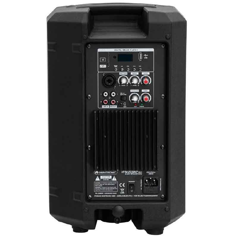 Omnitronic VFM-208AP MK2 - мобильная акустическая система, 2-полосная, активная, 8''+1'', 80/160Вт, max.SPL: 114дБ, 60-20000Гц, 6.95 кг, MP3-проигрыватель, USB, SD, Bluetooth, пластиковый корпус.
