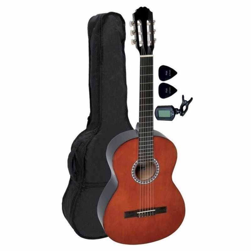 GEWA Basic 3/4 (Walnut) Set – классическая гитара 3/4, которая дополнительно комплектуется: чехлом, тюнером и 2 медиаторами. GEWA Basic 4/4 станет отличным выбором в качестве первого инструмента. Изготавливаются эти инструменты с применением нового оборудования, что позволяет избежать большинства дефектов. Для изготовления верхней деки используется ель, липа – для корпуса. Такое сочетание позволяет добиться сбалансированного звука. Гриф и накладка изготовлены из материала пакка, состоящего из ценной древесины и синтетического волокна. Такой материал прочен, неуязвим к изменению влаги и температуры.