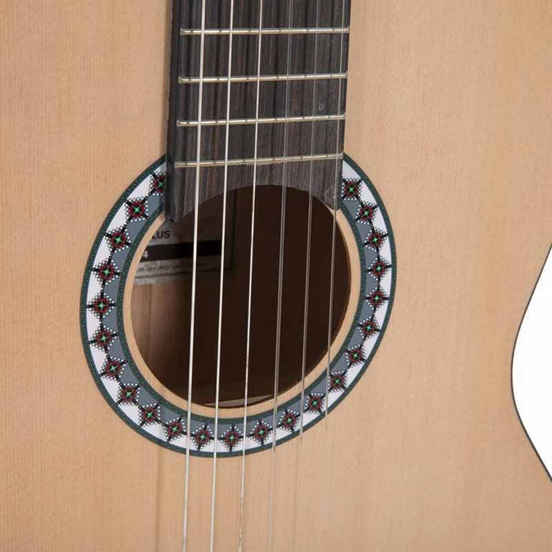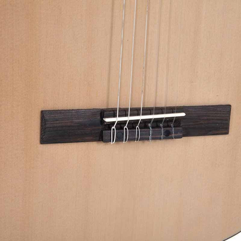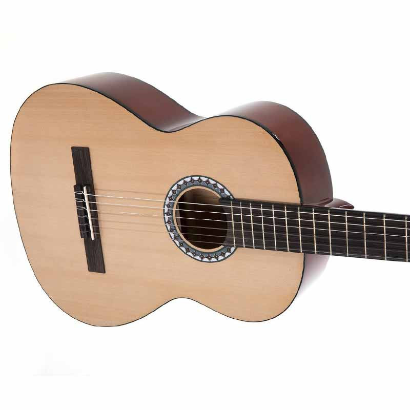 Верхняя противня изготавливается из ели, которая формирует основной тембр классической гитары и позволяет звучать выразительно. Корпус изготавливается из липы, что придает звуку мягкий и объемный характер, в сочетании с еловым топом открывает гармоничное звучание для игры классических произведений. Глубокое звучание басовых струн с хорошим сустейном, ярким звучанием высоких. На гитаре установлены германские струны Hannabach.