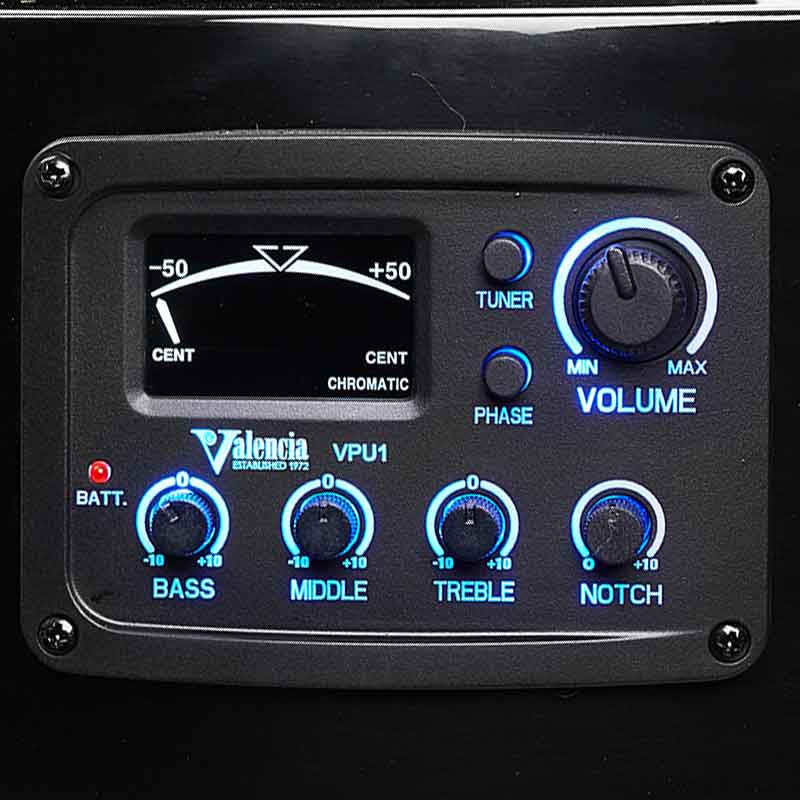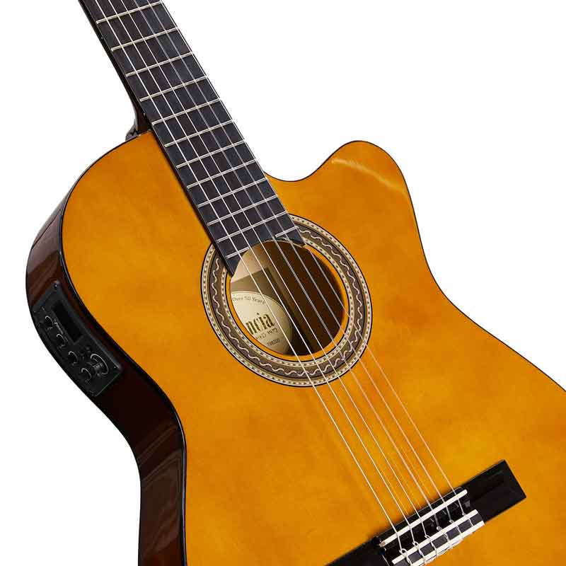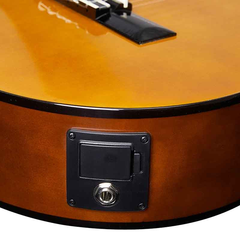 Встроенная электроника и вырез (Cutaway), 3-полосный эквалайзер и хроматический тюнер позволяют легко подключать гитару к усилителю или микшеру. Форма со срезом обеспечивает удобный доступ к верхним строям. Это делает гитару универсальной: она подходит как для акустических занятий, так и для выступлений на сцене или студии.