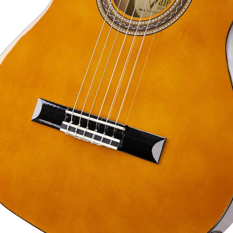 Полноразмерная классическая гитара, идеально подходит для музыкантов, только начинающих знакомиться с миром музыки и нуждающихся в надежном, функциональном инструменте.