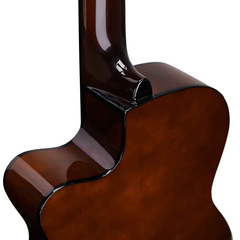 Натуральный цвет и лакированное покрытие, черный цвет в сочетании с глянцевым лаком придает гитаре элегантный, эстетический и привлекательный вид, что важно для начинающих.
