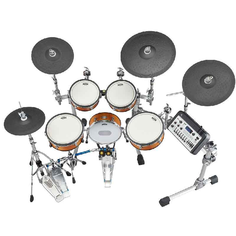 Yamaha DTX10K-M (Real Wood) – электронная ударная установка с деревянными корпусами. Педы имеют деревянные корпуса из березы, которые производятся и окрашиваются на фабрике акустических барабанов Yamaha. Значки, лаги и обручи также являются обычными компонентами акустических барабанов. В целом эти корпуса предлагают внешний вид и красоту настоящих акустических барабанов и невероятно привлекательны для барабанщиков.