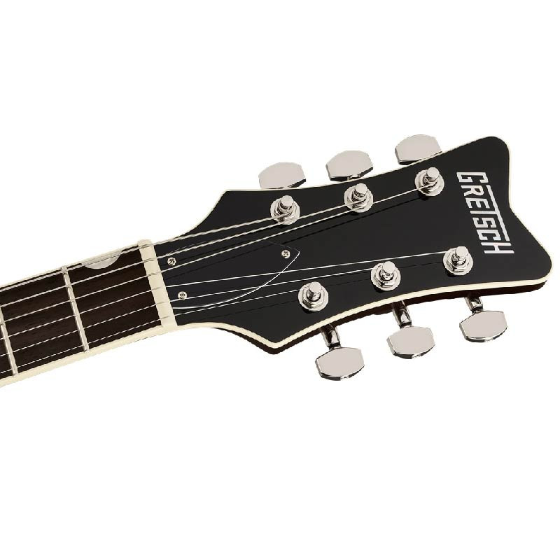 Gretsch CVT Double-Cut with Wraparound Tailpiece (Vintage White) – электрогитара в фирменном стиле Gretsch с акцентом на удобство игры и выразительное звучание. Корпус гитары выполнен из махагони со скошенными контурами, что обеспечивает легкость инструмента, комфорт при игре и характерный ретро-дизайн. Гриф с махагони имеет болтовое крепление и форму Performance C, что делает его удобным для быстрых рифов и соло. Накладка грифа из лаврового дерева с перламутровой инкрустацией Neo-Classic™ для большого пальца и строя Medium Jumbo обеспечивают точность и комфорт при игре. Порожок выполнен из материала Graph Tech NuBone, что повышает стабильность строя и улучшает сустейн.