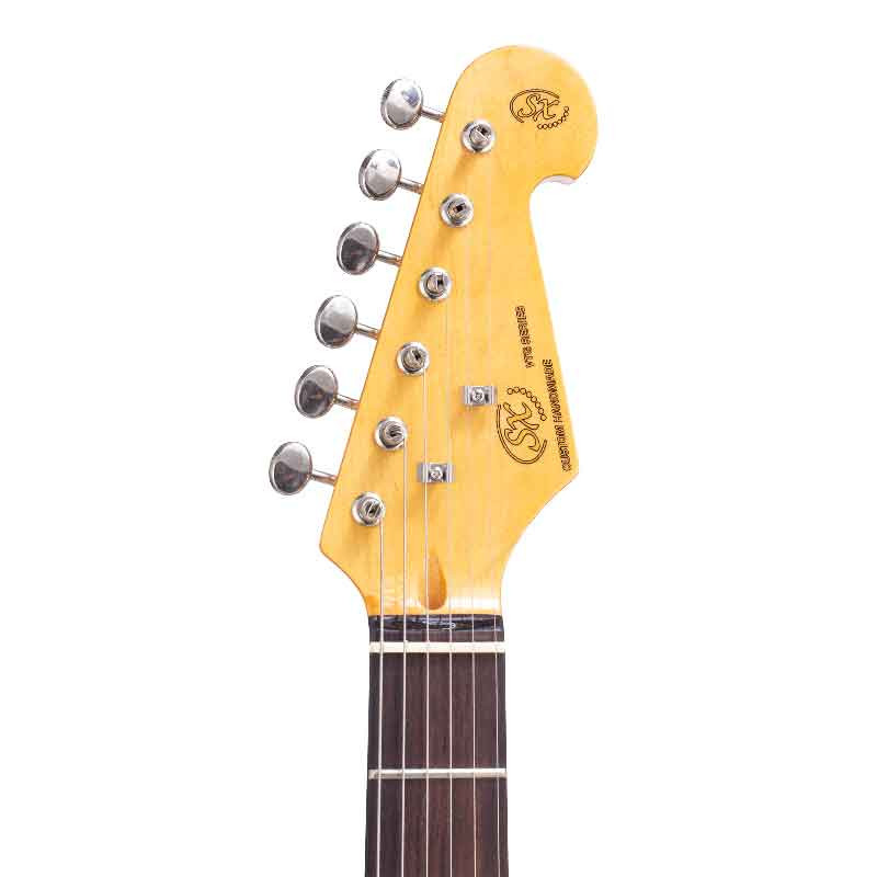 SX SST62/HSS/CAR – электрогитара изготовлена в классическом стиле, с винтажным видом, но модернизированной конфигурацией звукоснимателей. Эта гитара сочетает винтажный вид 60-х с современной универсальностью HSS-конфигурации, что делает ее очень гибкой для разных музыкальных стилей. Классический дизайн корпуса (типа Stratocaster), вдохновленный моделями 60-х. Конфигурация звукоснимателей HSS Humbucker-Single-Single, это ключевая особенность этой модели – хамбакер в бридже, сингл в центре и сингл в неке. Это обеспечивает универсальность звучания, объединяя мощный рок-тон хамбакера с чистыми тонами синглов.