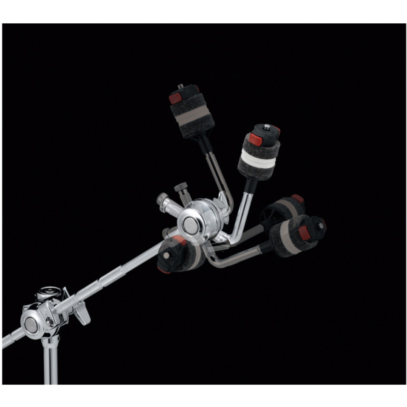 Стойка оснащена держателем для тома с поворотным крылом и системой наклона Orbital Quick-Tite, которая позволяет точно и быстро регулировать положение как тома, так и тарелки. Шарнирное соединение Glide-Tite обеспечивает жёсткую фиксацию элементов без потерь в передаче вибраций, а звукоизоляция True-Sound сохраняет чистоту звучания барабанов и тарелок.