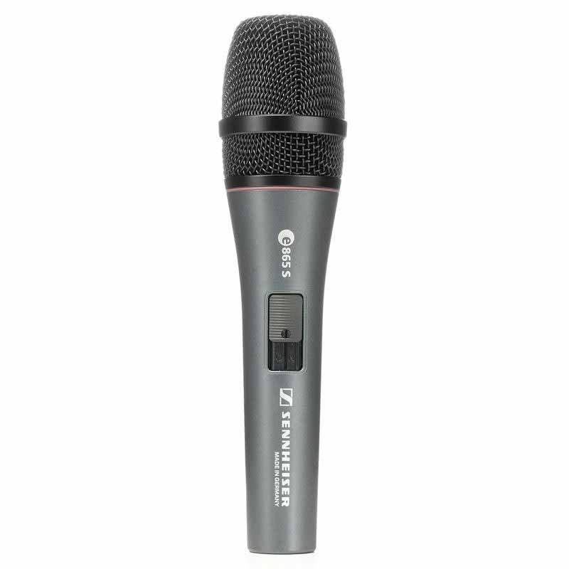 Sennheiser E 865-S – профессиональный, вокальный, конденсаторный микрофон с постоянной поляризацией капсюля (электретный) для озвучивания вокала и бэк-вокала на сцене. Микрофон отлично защищен от звуков вне оси направленности и возникновения обратной связи и имеет расширенный динамический диапазон с подъемом АЧХ на критических для вокала частотах. Микрофонная капсюля оборудована специальной защитой, защищающей мембрану от задувания и высоких уровней звукового давления. Микрофон оборудован антишоковой подвеской капсюля, катушкой ингибирования электромагнитных помех и бесшумным выключателем с фиксатором.