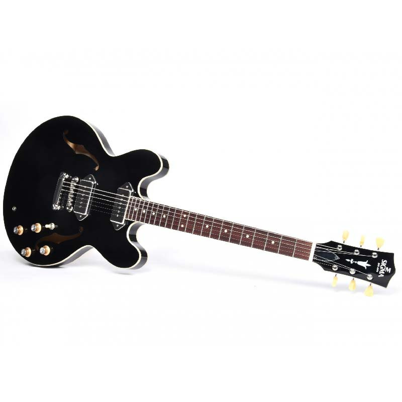 Sigma Semi-Hollow HBA-102P-BK – электрогитара сочетает в себе теплое, резонансное звучание с выразительной атакой и естественной динамикой. Корпус из клена дает четкую атаку, хорошо держит форму звука на громкости. Встроенный центральный брус гасит нежелательный фидбек, оставляя акустический резонанс. Вклеенный гриф крепко соединен с корпусом, обеспечивает длинный сустейн и стабильную передачу звука.