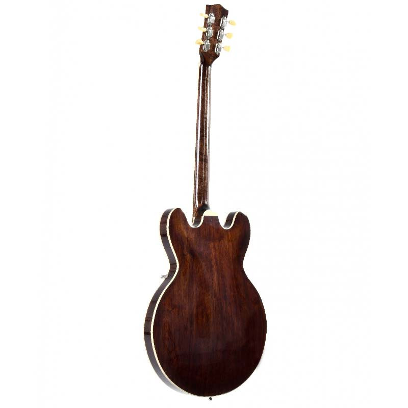 Sigma HBW-102H-DS – электрогитара полуакустическая с кейсом. Полуполый инструмент, созданный для мощного, насыщенного звучания с по-настоящему гибкими возможностями формирования тембра. Корпус изготовлен из черного ореха – древесины с темным, глубоким звуком и хорошим резонансом. Благодаря конструкции с центральным брусом гитара держит строй и избегает обратной связи даже на высокой громкости. Вклеенный гриф обеспечивает надежную передачу вибраций и длинный сустейн.