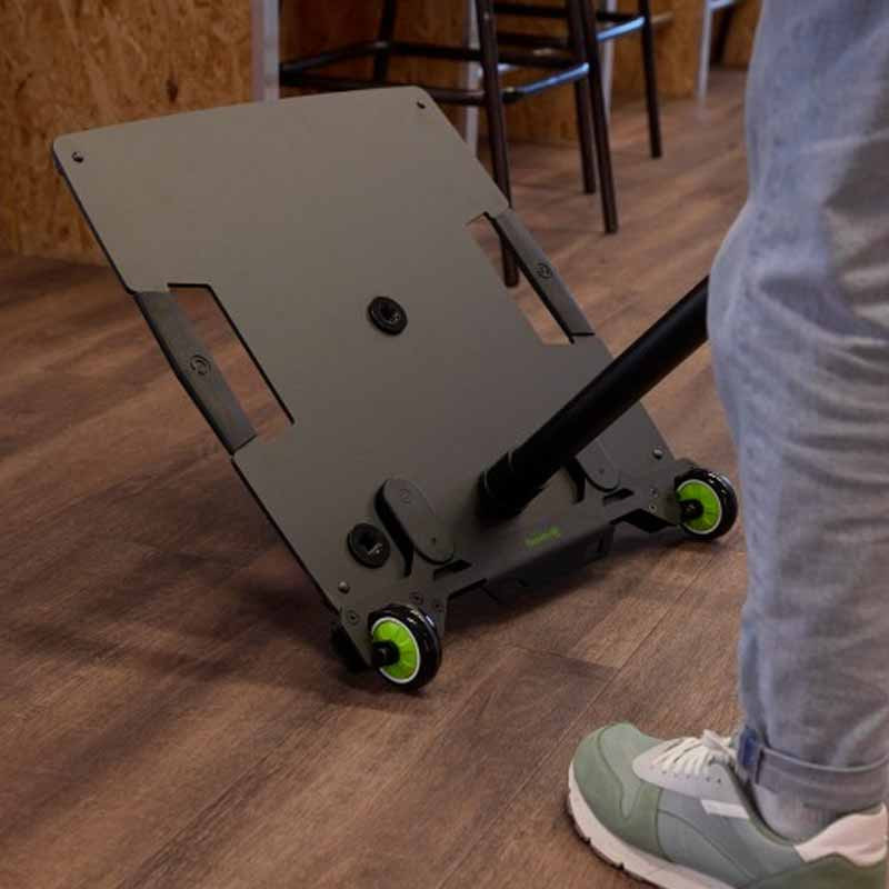 Максимальная грузоподъемность 40 кг делает ее пригодной как для легких, так и тяжелых стоек. Прочная конструкция из стали толщиной 5 мм гарантирует длительный срок службы и надежную работу при профессиональной эксплуатации. Нескользящие резиновые ролики с низким сопротивлением качению обеспечивают плавное и безопасное перемещение.
