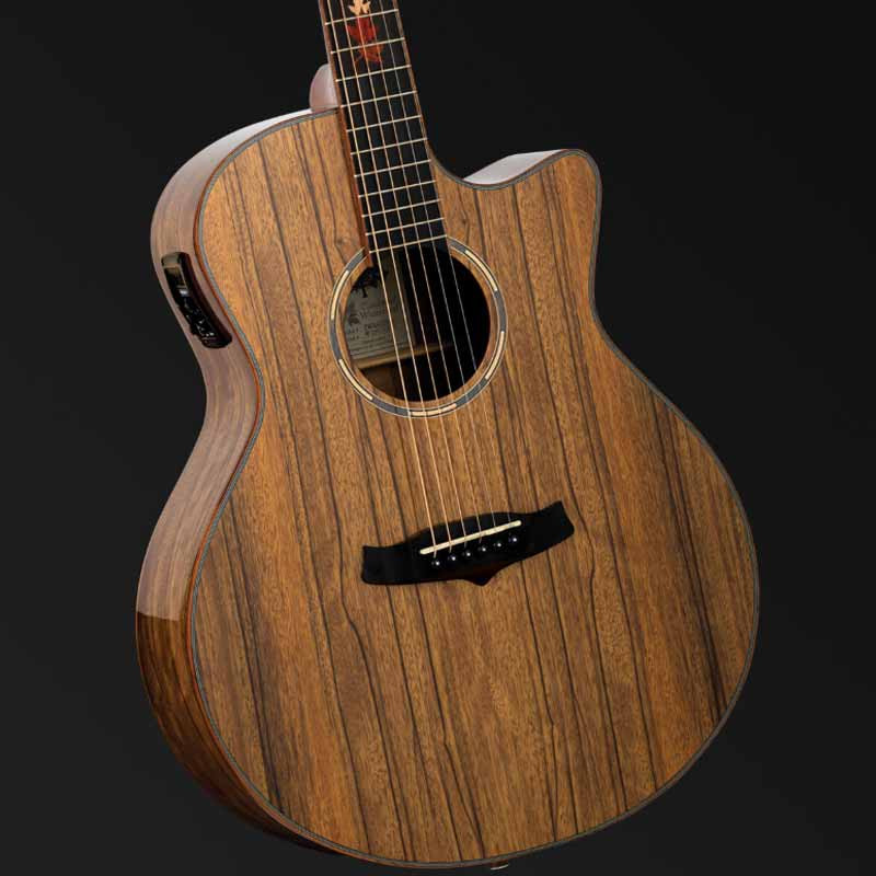Tanglewood TWX6-CE-BW Winterleaf Exotic Superfolk Solid Top Venetian CE – электроакустическая гитара, серия Winterleaf Exotic. Гитары серии Winterleaf Exotic – это мастерски изготовленные инструменты, разработанные с учетом потребностей современных гитаристов. Эти гитары сочетают высококачественные материалы и передовые функции, обеспечивающие исключительное качество звука и удобство игры.
