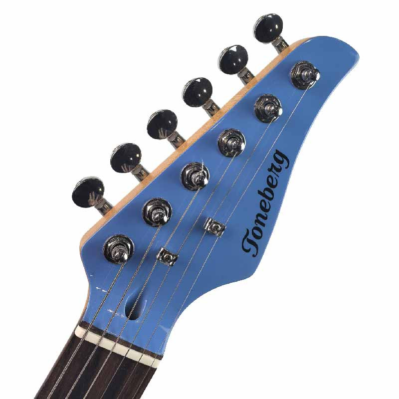 Toneberg TEIB 500 BL электрогитара, объединяющая энергию современного Superstrat-дизайна с безупречной скандинавской точностью. Ее корпус из тополя дарит легкость и сбалансированность звучания, в то время как глянцевое покрытие подчеркивает элегантные линии и производит впечатление настоящего инструмента для сцены.