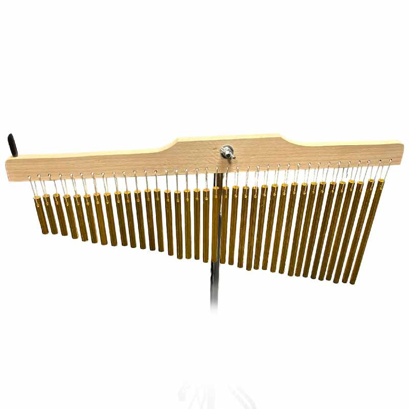 Конструктивно інструмент виготовлено з дерев’яної планки, до якої на делікатно натягнутих нитках прикріплені алюмінієві трубки. Поєднання дерева і металу не лише забезпечує приємний тактильний контакт, але й створює збалансований тембральний відгук: дерев’яна основа м’яко згладжує верхні обертони, металеві трубки додають яскравості й атаки. Така конструкція також гарантує стійкість звуку та надійність у використанні на сцені чи в студії.