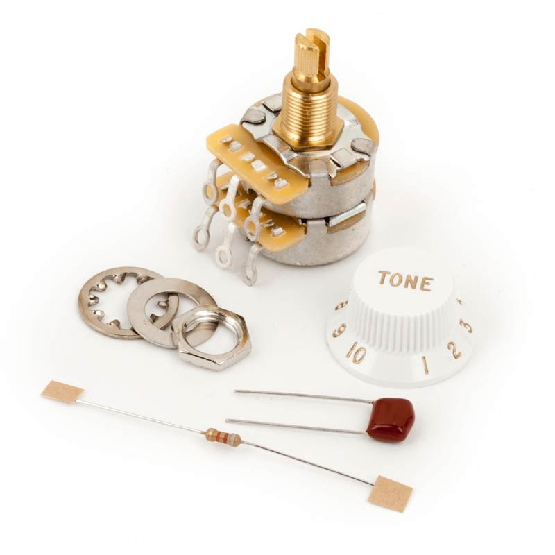 Fender Treble Bass Expander (TBX) Tone Control Potentiometer Kit - потенціометр, багаторівневий регулятор тембру 250K/1Meg, який розширює вашу тональну палітру. Він функціонує як стандартний регулятор тембру від 1 до 5. Після 5 він зменшує опір, пропускаючи більше басів, високих частот, присутності та вихідного сигналу до вашого підсилювача. Батарейки не потрібні. Кожен регулятор тембру TBX постачається з конденсатором 0.022 мФ, резистором 1/4 Вт, білою ручкою тону, монтажним обладнанням та інструкцією для встановлення.