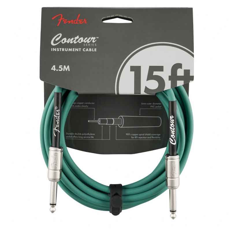Fender Cable Contour Series 4,5m (Sherwood Green) - гітарний, інструментальний кабель з бездоганною якістю передачі сигналу. Провідник 24 калібру для підвищеної потужності сигнального шляху. Дротова оболонка зовнішнім діаметром 6 мм для низького рівня шумових перешкод. Спіральне екранування із 90% безкисневої міді для кришталево чистого звуку. Нікельовані роз'єми забезпечують довговічність.