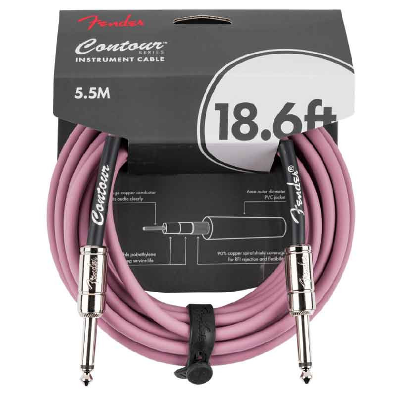 Fender Cable Contour Series 5,5m (Burgundy Mist) - гітарний, інструментальний кабель з бездоганною якістю передачі сигналу. Провідник 24 калібру для підвищеної потужності сигнального шляху. Дротова оболонка зовнішнім діаметром 6 мм для низького рівня шумових перешкод. Спіральне екранування із 90% безкисневої міді для кришталево чистого звуку. Нікельовані роз'єми забезпечують довговічність.