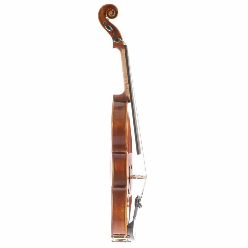 Кілки, накладка на гриф, підборідник та струнотримач виготовлені з чорного дерева (ebony). Це дуже цінна деревина, відома своєю глибокою темною (майже чорного кольору) текстурою.Чорне дерево є надзвичайно щільним і стійким до зносу матеріалом, що робить його ідеальним для частин скрипки, які піддаються постійному контакту та механічному тиску. Темний колір чорного дерева додає скрипці елегантного і витонченого вигляду. Деревина не реагує на зміну вологості або температури - це важливо для таких компонентів, як кілки, які повинні забезпечувати точне налаштування струн. Якісний струнотримач від німецького бренду Wittner оснащений мікропідстройкою для легкого налаштування. Завдяки своїй гладкій поверхні чорне дерево забезпечує комфортну й плавну гру. Гриф з цього матеріалу має приємну текстуру, яка сприяє легкому ковзанню пальців музиканта під час гри.