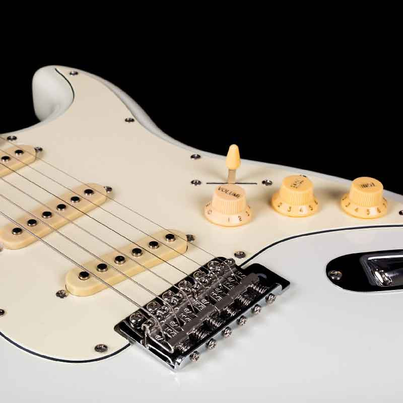 Jet Guitars JET JS-300 OW електрогітара, розроблена для забезпечення класичного тону синглів з покращеним сучасним відчуттям гри. Вона належить до початкової серії JET, але має преміальні характеристики, такі як смажений гриф з канадського клена та зручний профіль "Modern C". Корпус з липи забезпечує збалансований і легкий тон. Керамічні звукознімачі в конфігурації SSS (сингл-сингл-сингл) пропонують яскравий і чіткий звук, типовий для гітар цього стилю.