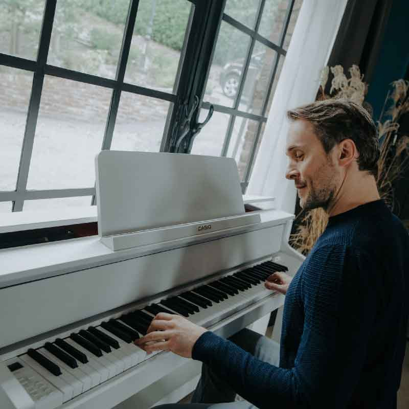 Casio Celviano Grand Hybrid GP-310WH - цифрове фортепіано, що розроблене у співпраці з C. Bechstein, GP-310 має революційну механіку Natural Grand Hammer Action, яка поєднує дерев'яні клавіші повної довжини з рухомими молоточками, що забезпечує автентичність дотику, що набагато перевершує будь-яке інше цифрове піаніно.