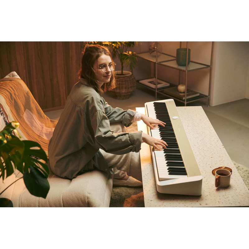 Casio Privia PX-S1100MB - цифрове піаніно, яке по праву здобуло репутацію одного з найкращих цифрових фортепіано для початківців, студентів та виконавців, які регулярно виступають на сцені. Відоме завдяки надзвичайно тонкому корпусу та багатій виразності звучання, компактне цифрове піаніно PX‑S1100 тепер доступне у двох нових кольорах: Calm Blue та Mellow Beige. Ці м'які, спокійні відтінки вдохновлені моментами тиші й гармонії — ідеальні для сучасного інтер'єру та вашого музичного натхнення та гармонії. Нові кольори створені для тих, хто використовує піаніно як засіб релаксування — для медитації, тиші, відпочинку.