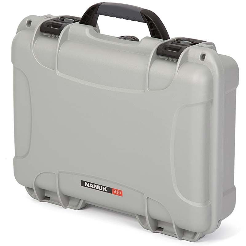Кейс для захисту обладнання виготовлений з ударостійкоїполімерної смоли NK-7 з опорними вузлами з нержавіючої сталі і посиленими кутами. Nanuk 910 комплектується міцною складною ручкою, вбудованим клапаном регулювання тиску, внутрішньою вставкою з м'якого антистатического поролону і має внутрішній неопреновий ущільнювач, який забезпечує повну герметичність і водонепроникність кейса і гарантовано захищає його вміст від пилу, бруду, вологи і підсилює захист речей всередині від механічних пошкоджень при ударах і падіннях.