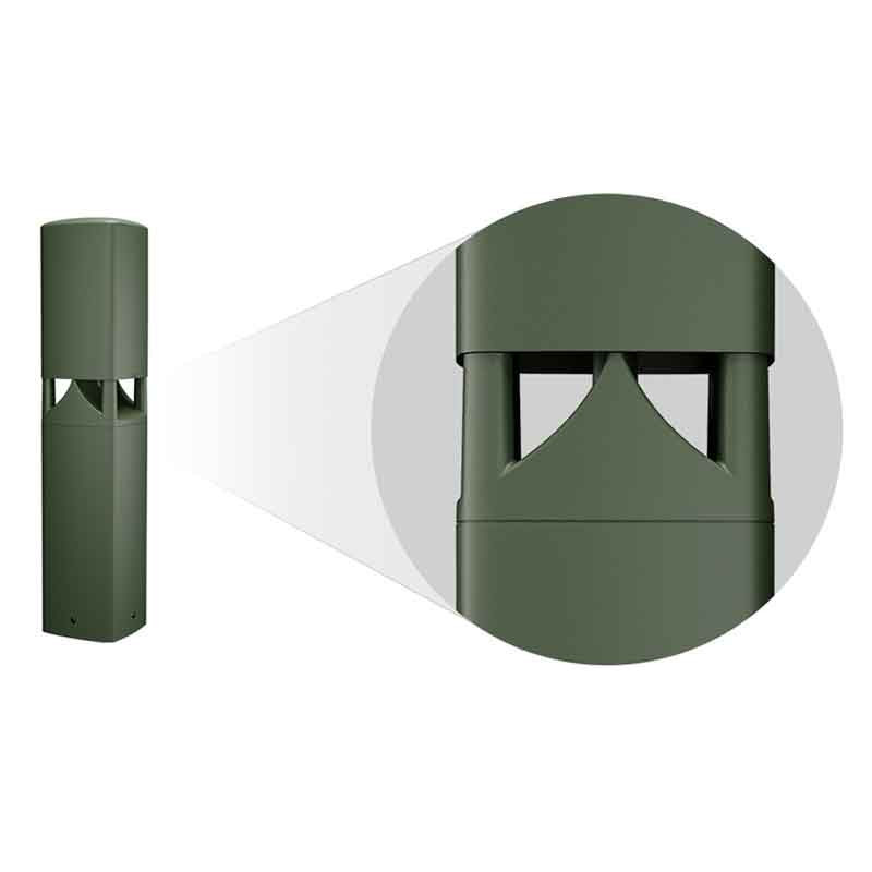 Дизайн: Ненав'язливий зелений колір (RAL 6020), який легко зливається з ландшафтом, але також може бути пофарбований для індивідуального оформлення.