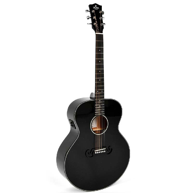 Sigma GJM-1E-MFBK - акустична гітара, з підключенням та електронікою Fishman Presys II. Безкомпромісний інструмент із масивним звуком і не менш масивним виглядом. Формат Grand Jumbo з 14 ладами поза корпусу — це про гучність, об’єм і присутність у міксі. Цей корпус створений для сцени, відкритих акордів і динамічного фінгерстайлу. Головна візуальна перевага — це глянцеве покриття Metallic Flake Black, що грає на світлі металевими відблисками. Це не просто чорна гітара — це інструмент, який виглядає, як космічний корабель у світі дерев’яної класики.