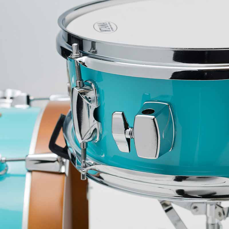 Мініустановка TAMA Club-JAM LJK28H4-AQB – це компактна та зручна ударна установка, що складається з бас-барабану 18x7" і малого барабана 12x5". Вона ідеально підходить для невеликих концертів, вуличних шоу та будь-яких місць з обмеженим простором. Попри компактні розміри, установка забезпечує чистий і глибокий звук завдяки корпусам з тополі.