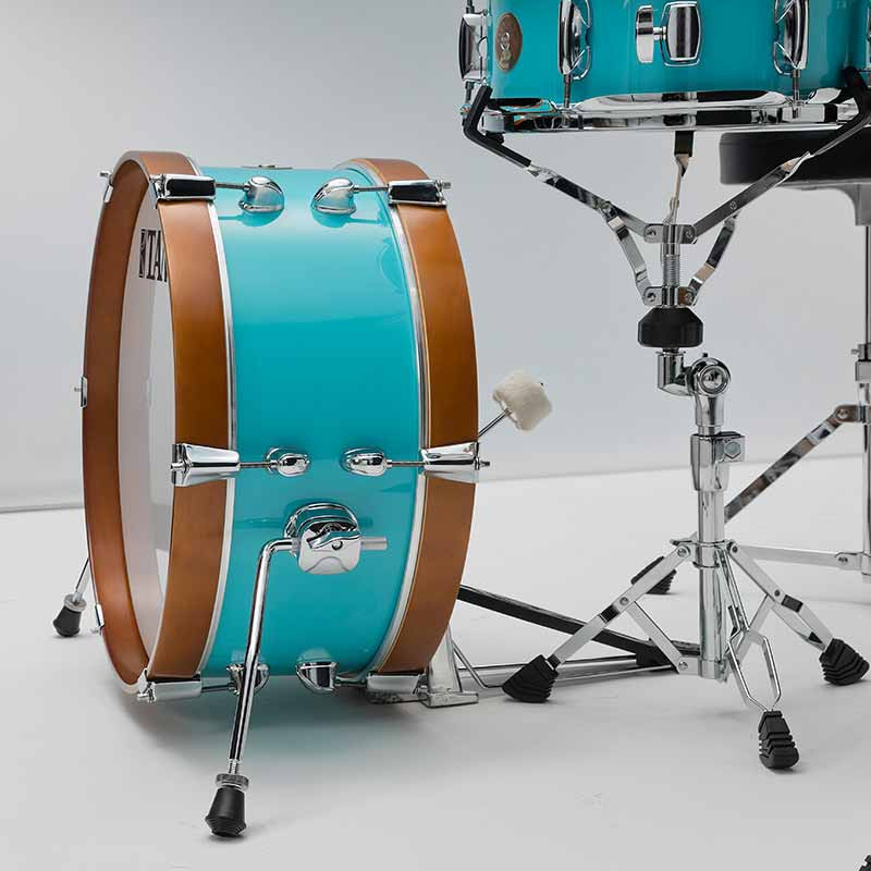 Tama LJK28H4-AQB – компактна 2-елементна ударна установка серії Club-JAM Mini, бас-барабан 18x12", малий барабан 12x5", корпус 9 шарів тополі 8 мм, обруч бас-барабана: дерев’яний, в комплекті: стійка для малого барабана, стійка для хай-хету, педаль бас-барабана, стілець, колір – блакитний (Aqua Blue). Призначення: вуличні виступи та малі камерні сцени.
