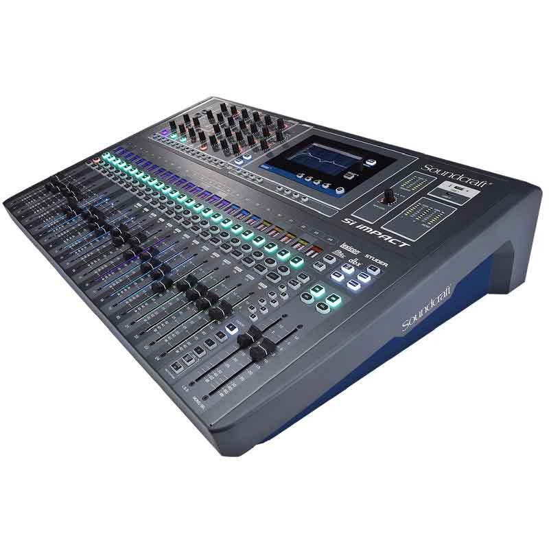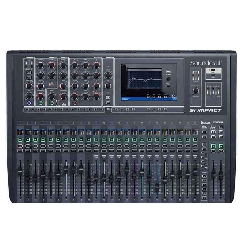 Soundcraft Si Impact – новий 40-канальний цифровий мікшер із безкомпромісною якістю звуку, вмонтованим USB & MADI модулем та можливістю керування з IPad. Новий Si Impact поєднує новітні цифрові технології із неперевершеною якістю звуку від Soundcraft. Розроблений, щоб бути простим як аналоговий мікшер, але з потужним DSP, унікальною системою підсвічування фейдерів FaderGlow ™, вмонтованим 32вх/32вих USB-аудіо інтерфейсом та MADI модулем, а також додатковим слотом для карт розширення. Все це із можливістю дистанційного керування за допомогою IPad робить цей мікшер ідеальним вибором для гурманів мікшування звуку.