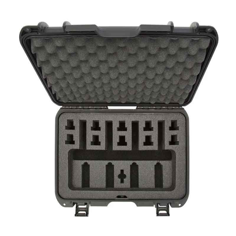 Благодаря такому кастомному ложементу в кейсе Nanuk 925 можно свободно разместить четыре пистолета классической конструкции (в том числе и модели с замком на спусковом крючке, а также модели с затыльником рукояти типа "beavertail") с 10 (десятью) запасными магазинами стандартной емкости или с 10 (десять).