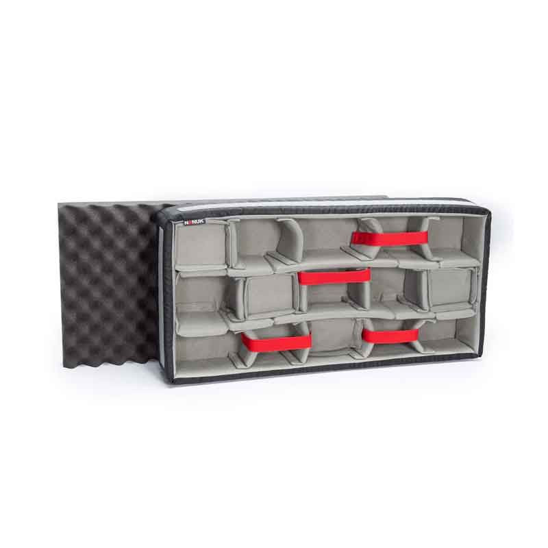 Nanuk 980 Padded Divider – секционный органайзер Padded Divider для кейса Nanuk 980 позволяют настроить внутреннюю часть кейса под ваши потребности. С помощью этого разделителя можно легко перестроить наполнение кейса. В комплекте длинные и короткие делители, а также мягкое дно и наполняющая поролоновая часть для крышки.